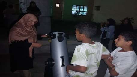 در پایان این برنامه کودکان و نوجوانان شرکت کننده مینابی با تلسکوپ به نظاره ماه نشستند.