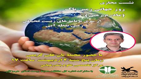 با همکاری اداره کل حفاظت محیط زیست استان هرمزگان، نشست «مادرم زمین » از سری برنامه‌های زیست محیطی «زمین نقطه آبی»، در روز جهانی زمین پاک از سوی مرکز تخصصی علوم کانون برگزار گردید.